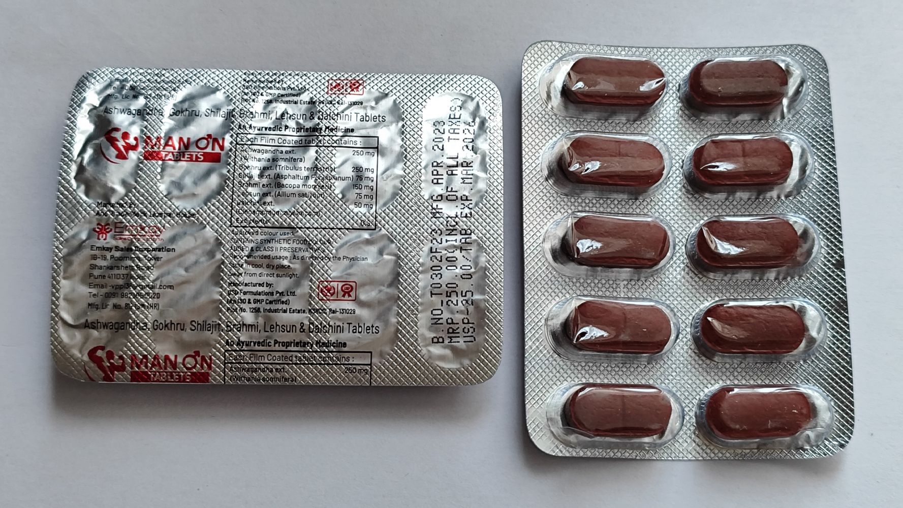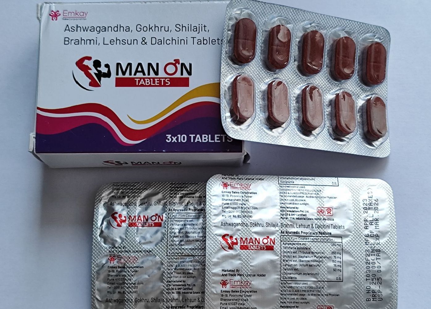 Форма выпуска «MAN ON TABLETS» – таблетки (30 штук). В состав входят исключительно компоненты природного происхождения, а именно: Ашваганда, Гохру, Шиладжит, Брахми, Лехсун и Далчини.
